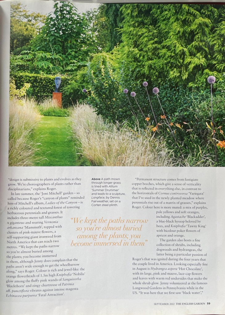 I cannot thank you enough for letting us come round your wonderful garden. It was truly inspirational. I was very excited to see all your different combinations and some plants I had never seen planted before. Your sense of colour is courageous and stylish! I feel I have learned a lot.